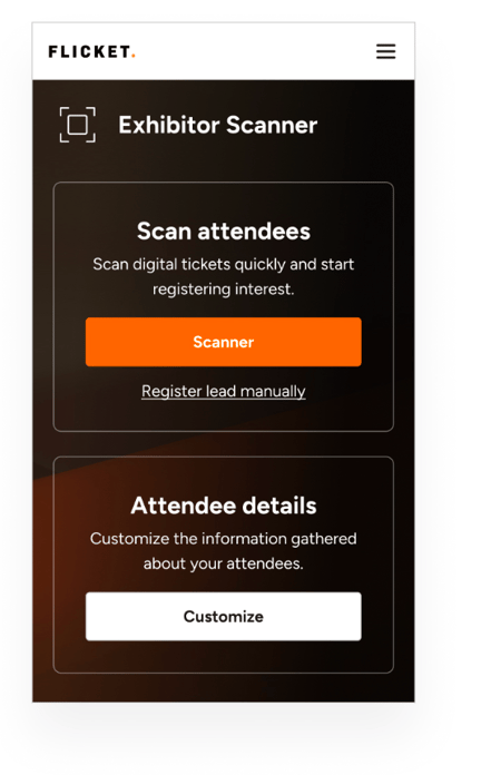 1. Exhibitors can go to Scanner from the dashboard or the menu in the top-right corner.